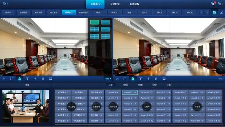 1、平台级统一管控:音视频多系统综合管控、多会场系统统一调度。
