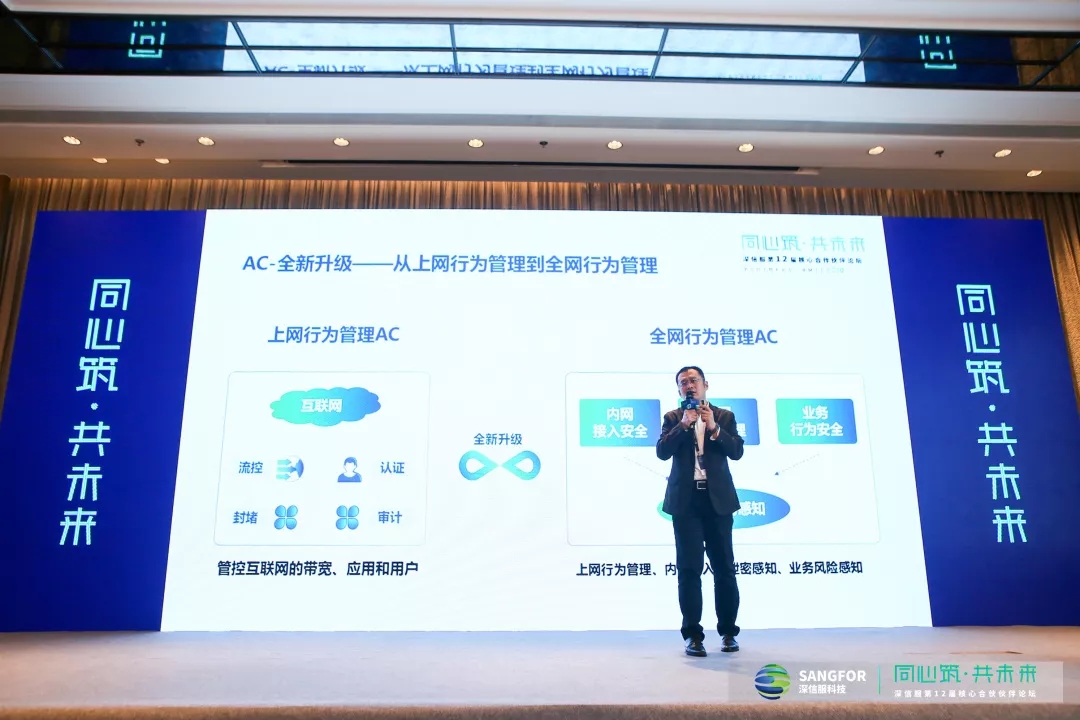1月5日,在深信服第12届核心合作伙伴论坛现场,深信服安全业务CTO郝轶重磅推出新一代——深信服全网行为管理AC!