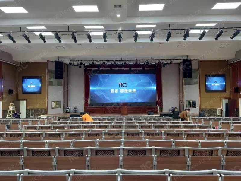 itc为该校建设了集LED显示屏、专业会议扩声、舞台灯光、中控、矩阵等系统的整体解决方案,完善学校配套建设。