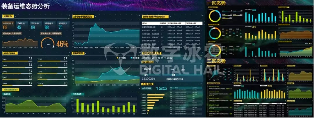 支持对接作战装备既有海量业务数据,如装备模拟训练、运行监控、维护保障等综合运行数据,提供统计图表、分布图、关系图、空间统计图、空间分布图、空间关系图等多大类近百种数据可视分析图表,进行多维度分析研判,并支持组合为数据分析驾驶舱进行综合显示,实现多指标数据的并行监测分析,为管理者决策研判提供全面的数据支持。