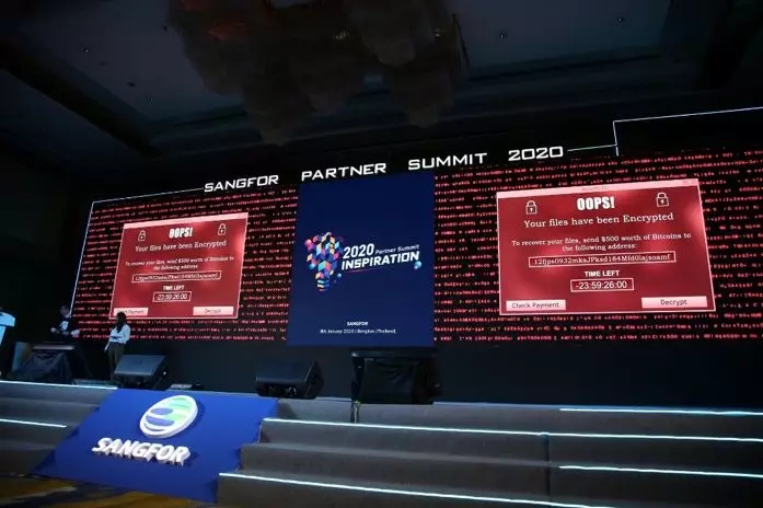 2019年网络安全事件频发,深信服国际市场副总裁袁楠丁从黑客的角度,分享了2020年黑客攻击的演变趋势,以及深信服将如何帮助用户更好地应对未知攻击和威胁。为了更生动直观地展示深信服终端检测响应平台EDR如何防护黑客攻击,袁楠丁还现场邀请观众上台扮演“黑客”,模拟黑客攻击场景。