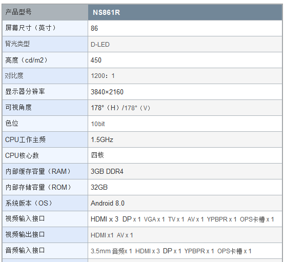 内置4核 1.5GhzCPU,32GB存储容量,Android 8.0 系统