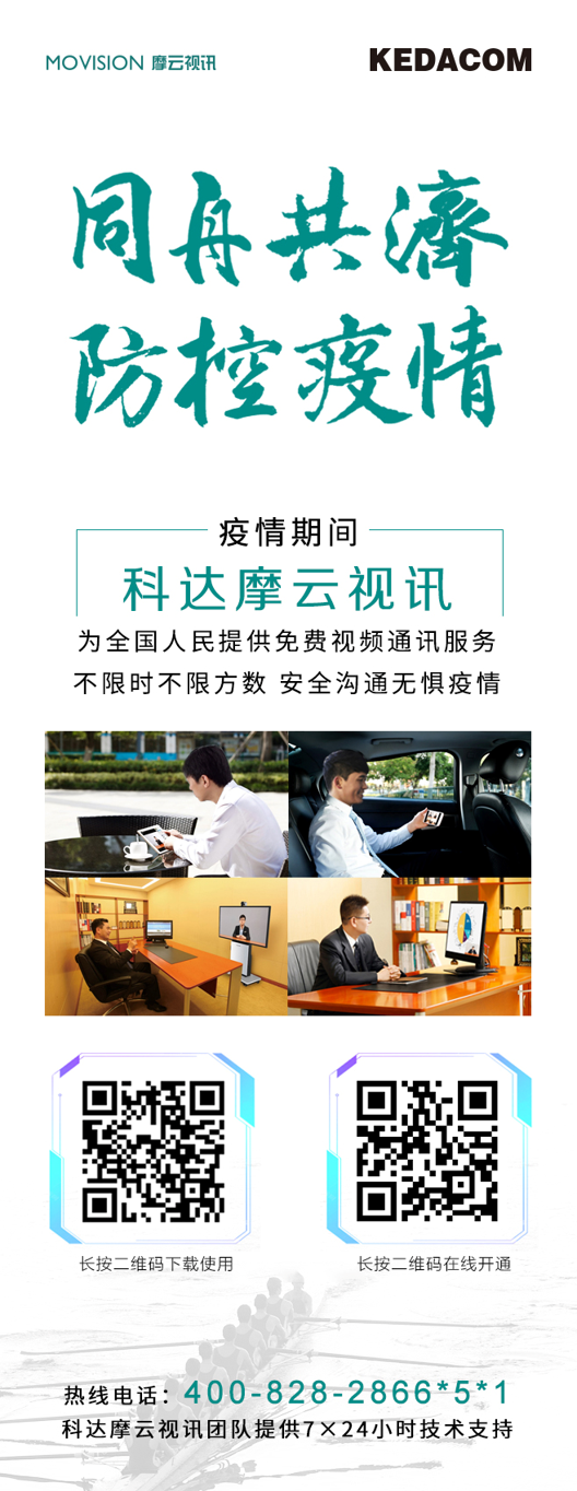 此外,疫情期间,为有效组织师资力量、加强疫情培训和沟通管理,我们欢迎全国各教育主管机构、学校师生免费申请开通ZGKD“摩云视讯”业务(按下图所示),可不限时、不限次数、不限人数,随时开展远程视频会议、教研教学沟通、疫情防控培训、应急可视会商等。