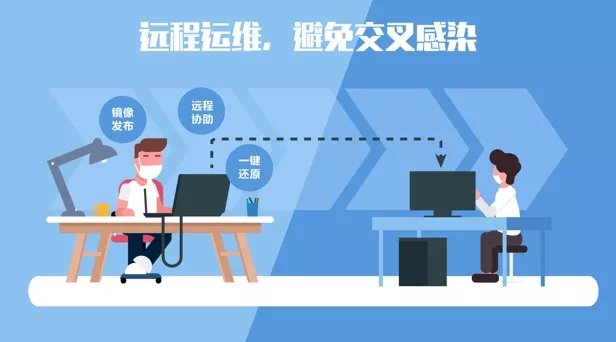 运维人员可以通过镜像发布、远程协助、一键还原等集中运维管理功能远程解决桌面问题。操作系统或者业务软件问题也不用再去现场处理,避免了交叉感染的情况。