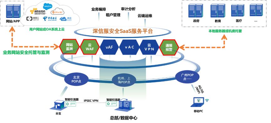 安全SaaS云平台具备高可用性,全国分布式节点,相当于多台高端硬件设备的效果,保护企业投资,同时满足等保2.0的高可用要求。