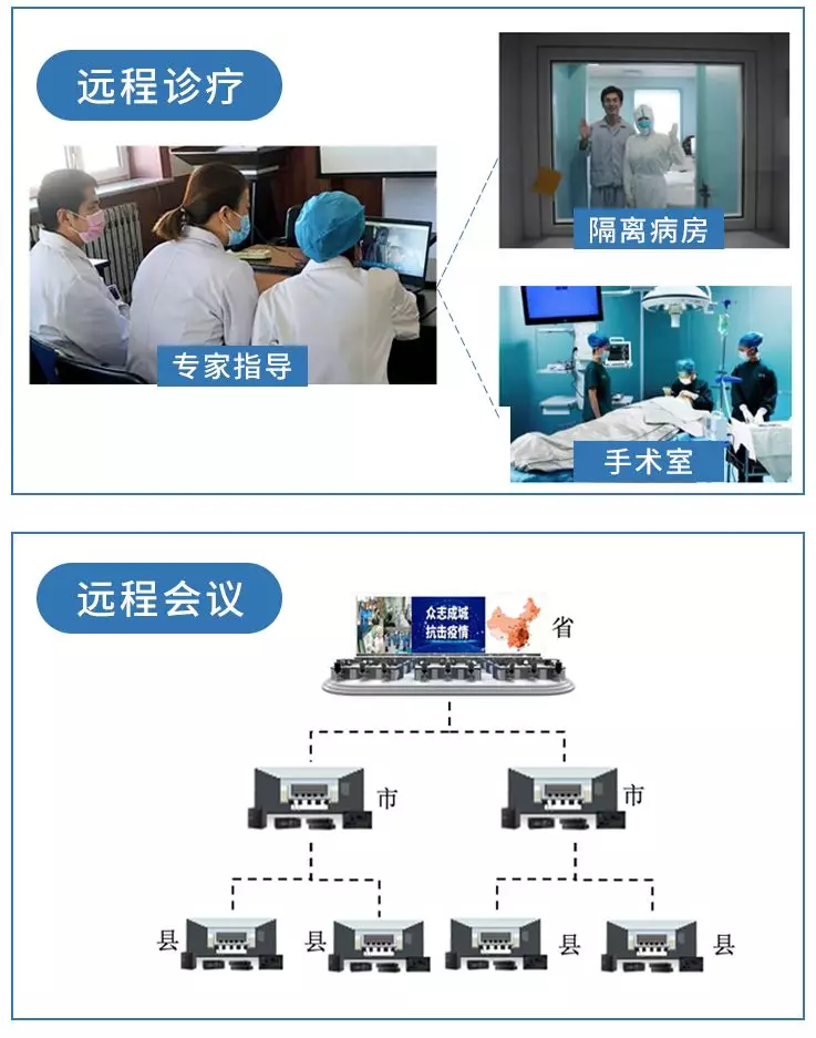 专家可通过电脑、手机参与基层医院进行病情沟通。利用视频会议、MIDIS云平台进行远程医疗与会诊。在重大疫情的防控和救治中,远程医疗可以实现优质医疗资源与基层共同探讨、提升救治能力的积极作用。