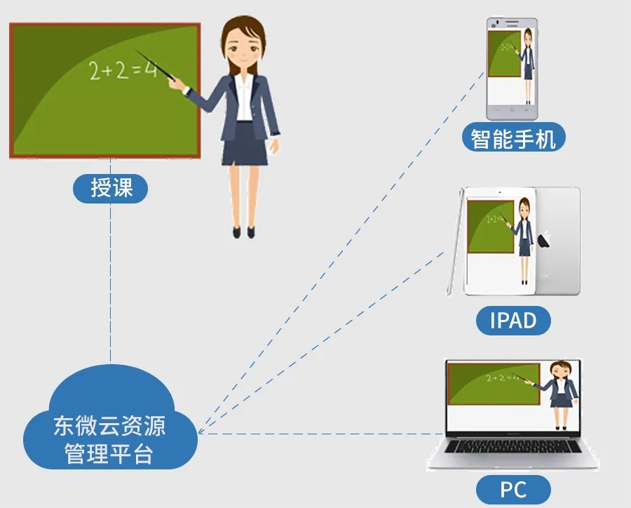 远程培训:老师通过网络进行教学直播,学习在家通过手机、平板、笔记本等终端进行相关课件观看与学习,足不出户就能线上学习。