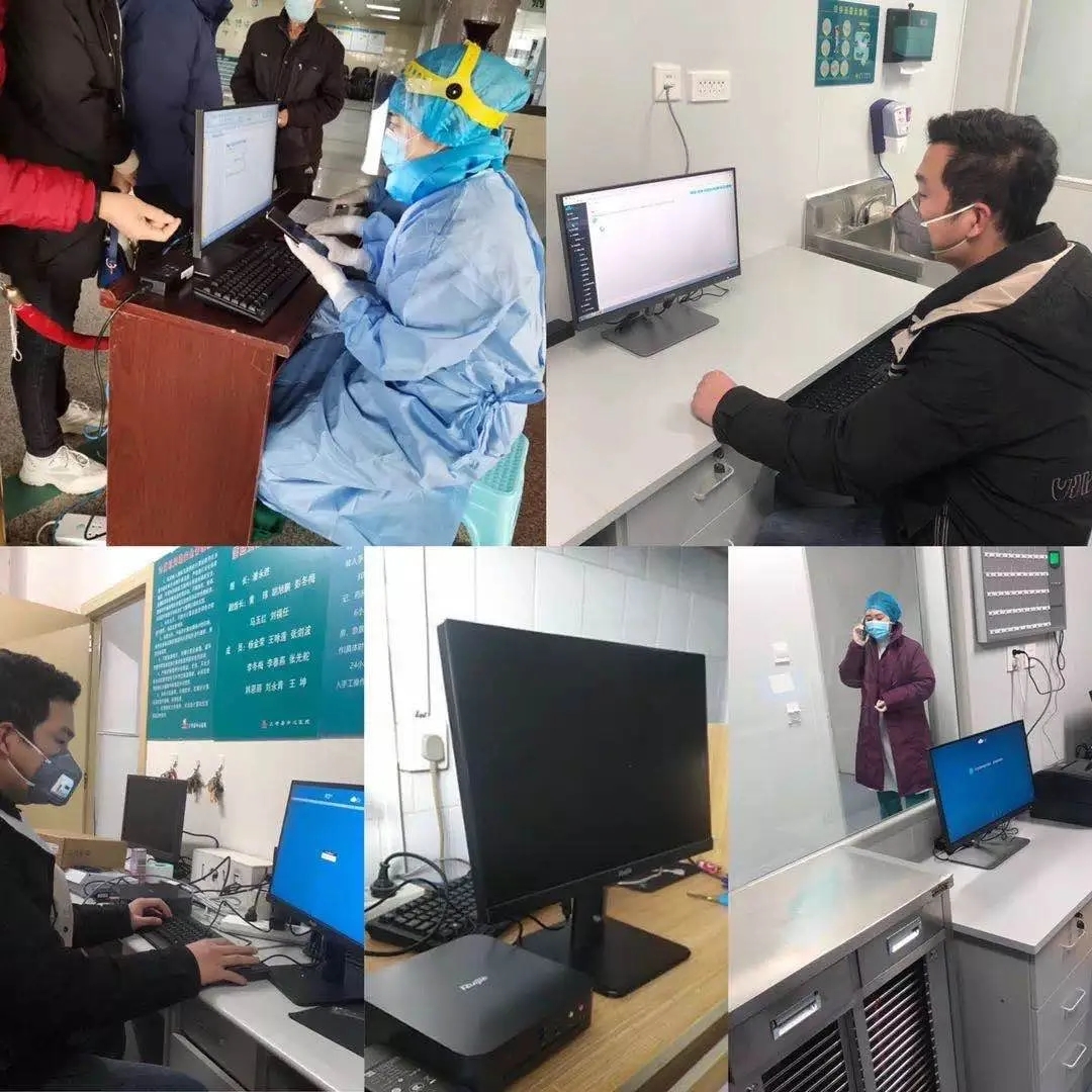 本次MOUU网络调拨的300多台IDV终端被应用于黄冈“小汤山”医院的门诊、护士站、检验科场景。IDV可远程运维,减少交叉感染的机会。同时,MOUU网络工程师已先于设备抵达现场,安排部署和测试工作。