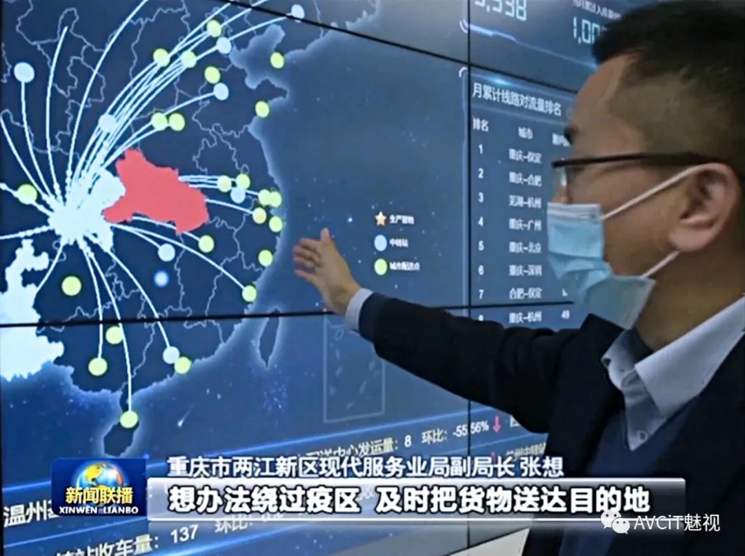 3月1日,中国中央电视台CCTV-1新闻联播对物流企业受疫情影响所面临的经营压力和采取的积极举措进行了报道,其中由AVCiT魅视分布式综合管控系统为支撑、搭建并启用的重庆“多式联运大数据服务平台”,自2016年建成以来零故障稳定运行,在此次疫情非常时期发挥了重要作用,让重庆的物流业迅速恢复,助力重庆规模以上工业企业的复工率达到了95.1%!