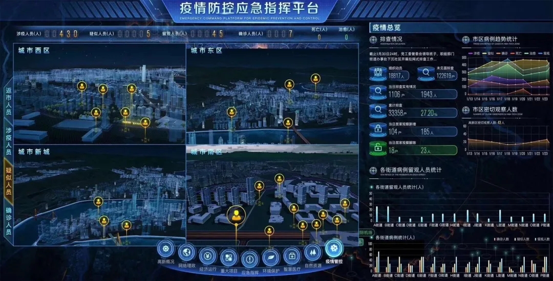 疫情大数据平台可以俯瞰疫情全局态势、疫情态势研判、疫情传播分析、高危区分析,为疫情防控指导提供全方位多维度的参考,大数据在疫情监测分析、病毒溯源、防控救治、资源调配等一系列疫情防控环节都发挥了巨大的支撑作用。