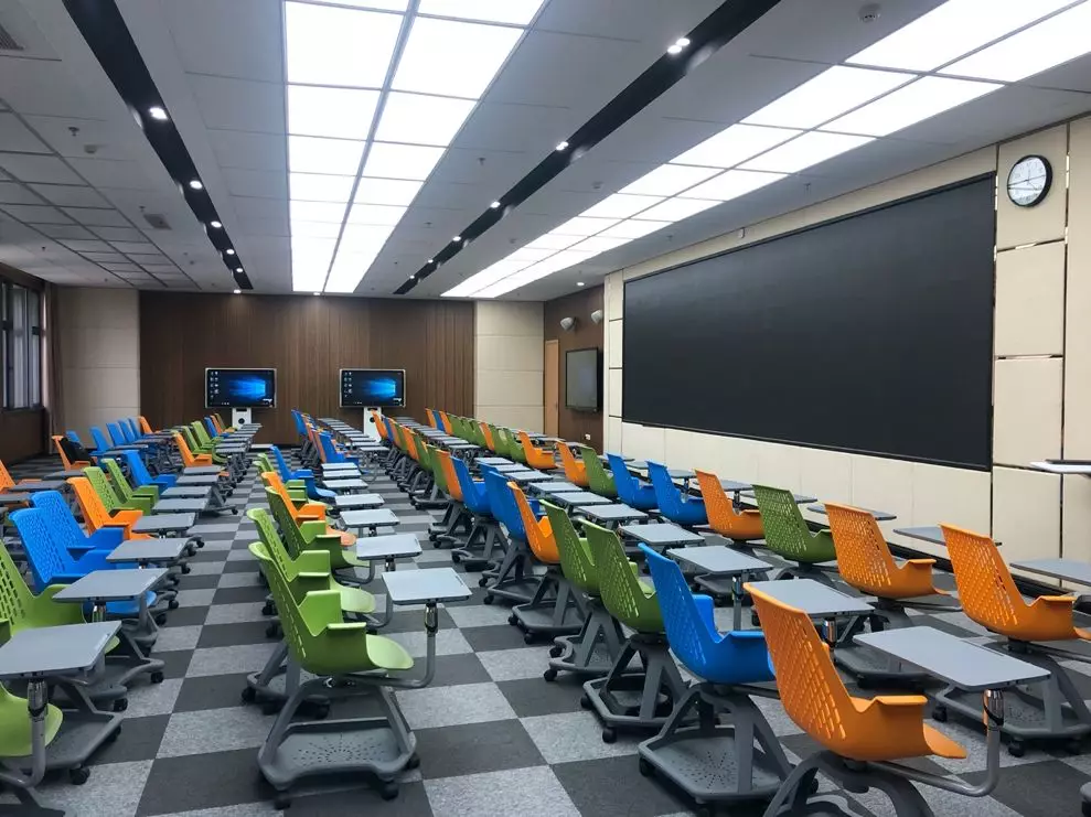 教务处装备科长盛老师表示:“从技术角度看,常规的多媒体教室在教学过程中已不能满足课程、教学模式改革的需求。座椅摆放不利于师生互动、课堂形式依旧是老师讲学生听的填鸭、灌输式教育。其次,课件形式也过于简单,往往学生一个U盘就可以将一学期的材料带走,但他能否真的理解并消化这些知识呢?其实未必。智慧教室作为一种全新的教学环境逐渐进入大家的视野,它可以打破传统单向教学模式,结合多种互动教学工具,实现双向互动式教学。”