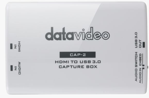 Datavido CAP-2 是 HDMI 转 USB 采集盒,支持 1080p50/60 高速采集,随插即用。可用在多种作业系统平台,并有 Line in 可切换音讯,声音来源可为嵌入音频或 者是外接 Line in 音源,比起一般的 UVC 设备更具弹性。
