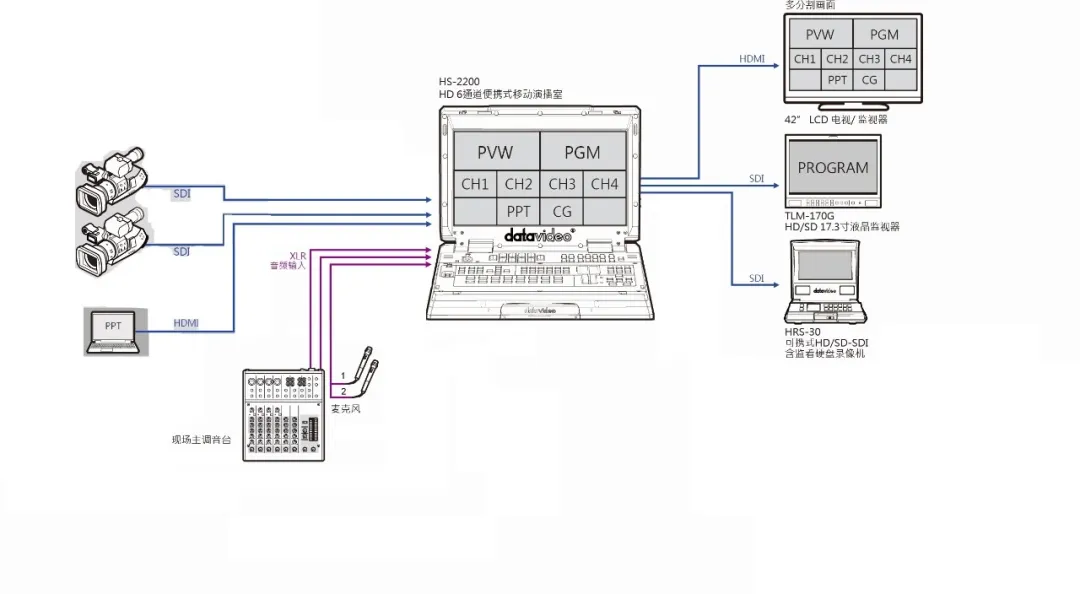 下面就让我们就来认识一下这次拍摄的主心骨:Datavideo洋铭 HS-2200 6通道便携式移动演播室。