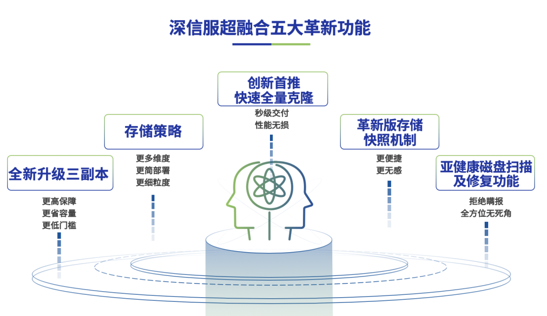 深信服关注到用户在数据中心云化过程中所面临的业务数据风险以及对存储服务的需求与日俱增,针对用户日常极易出现且亟待解决的痛点场景,深信服云计算全新升级超融合6.0版本,重磅推出五大革新功能,聚焦用户的数据保护与业务承载。