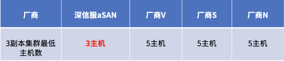 • 更低门槛:不同于市面上大多主流厂商配置三副本集群五主机起步的要求,深信服超融合最低配置仅需三台节点就可以部署三副本集群,降低部署门槛,面向更广阔的用户群体开放,让用户以最低的投资享受最高级别的数据保护。