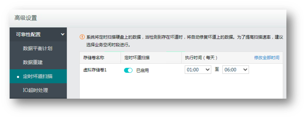 • 若硬盘出现少量坏道,则在扫描出坏道后立刻进行坏道修复,及时恢复数据副本的冗余性。