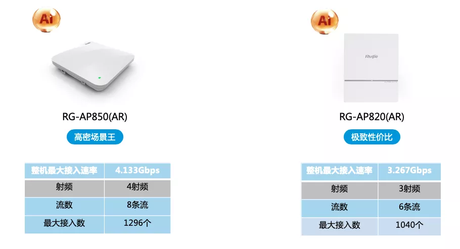 中端和高性价比款:RG-AP850(AR)和RG-AP820(AR)。