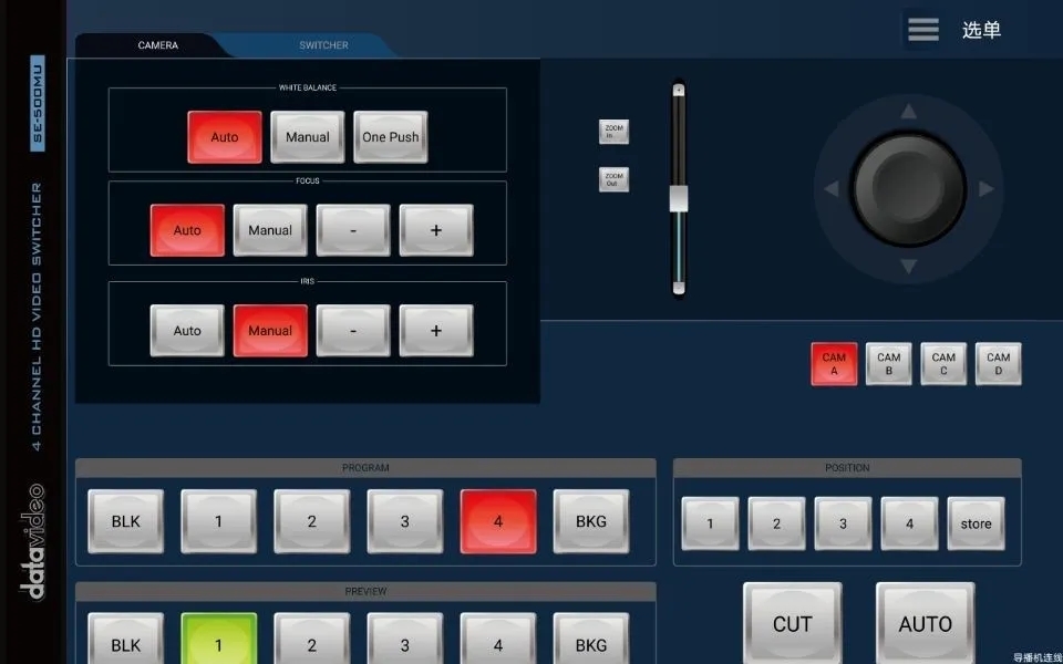 【补充小贴士:洋铭SE-500MU切换台。它不仅支持1080 60P的视频信号输入,机架式设计,多种切换效果模式,而且提供了内置的混音器功能,SE-500MU最大的优势就是通过平板电脑上的APP软件进行控制切换,还可以在控制洋铭云台摄像机,实时的调整画面以及存储预置位,非常的方便简单。】
