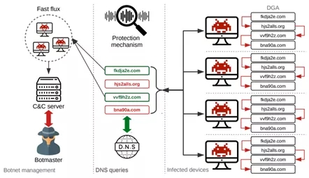 动态黑域名常用于僵尸网络或C&C等网络攻击行为,常常使用DGA算法(Domain Generate Algorithm)生成。