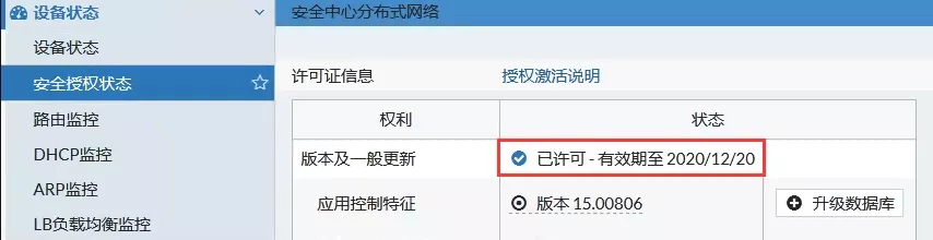 按照防火墙授权注册流程完成注册与激活,激活完成后确保当前设备仍处在授权有效期内,如下图所示: