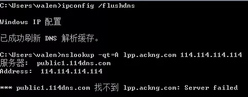 2、为确保效果,强制测试PC使用常见DNS服务器(案例中使用114.114.114.114 DNS服务器)对风险域名进行解析