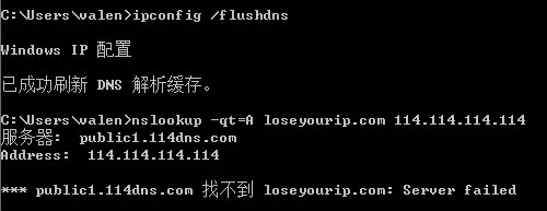 c)每次测试前,均使用命令“ipconfig /flushdns”清空DNS缓存,避免缓存影响测试结果。