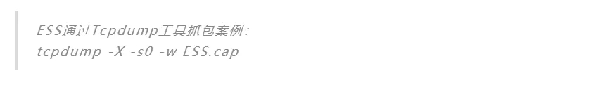 ESS的报文捕获方式和MCP相似也是通过Linux服务器上的Tcpdump工具进行报文捕获的此处不在赘述。