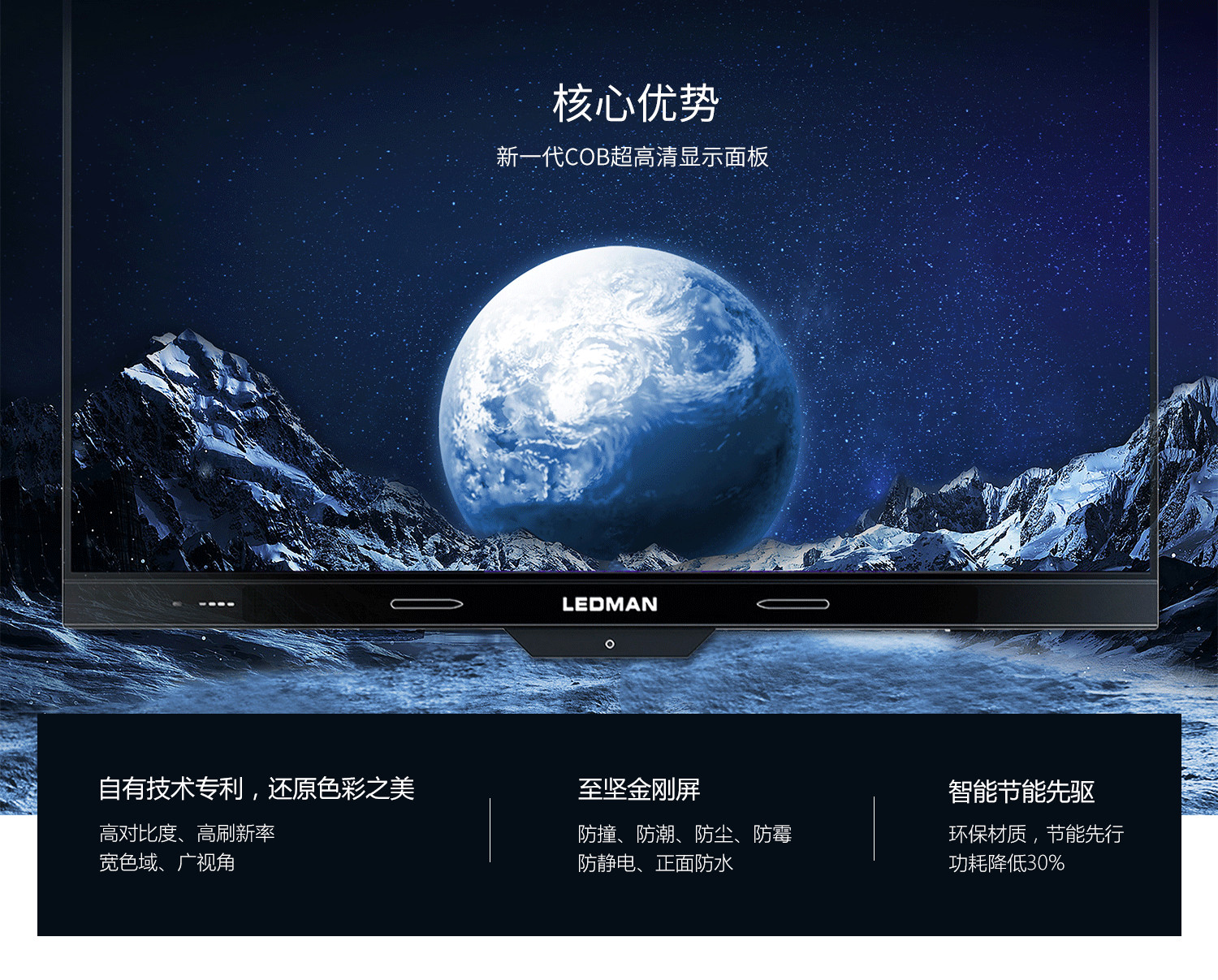 1. Micro LED: 高防护性、高可靠性、高清晰度、优异画质;