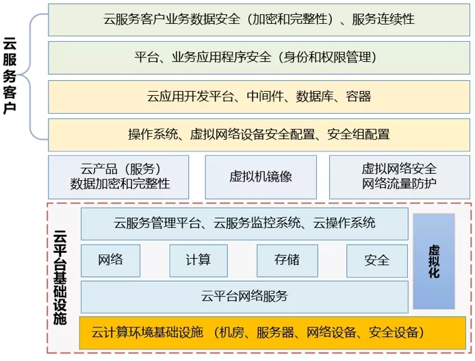 云服务客户则需对云上各类可控的资源(如虚拟机、安全组、云平台提供的安全功能)等进行配置,需对自行部署在云上的业务应用、操作系统、数据库、中间件、数据等负有完全的安全责任。