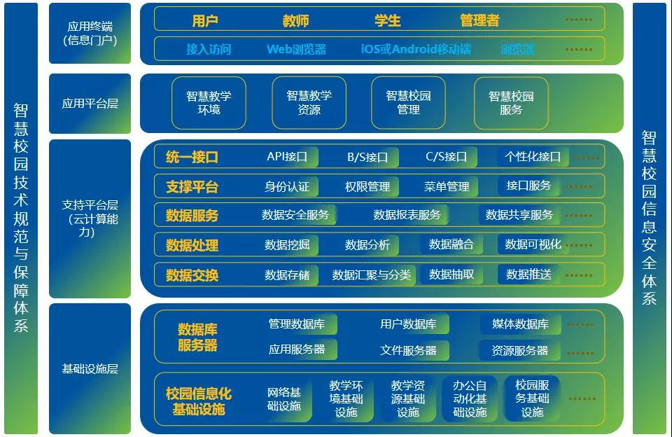 聚焦宁夏理工学院智慧校园建设的核心需求,根据国家标准《智慧校园总体框架(GBT36342-2018)》,深信服为宁夏理工学院提供了定制化的智慧校园解决方案。该方案依托云计算、大数据、人工智能等新兴技术,以“云网端”为核心,助力宁夏理工学院完成智慧校园的新技术形态布局。