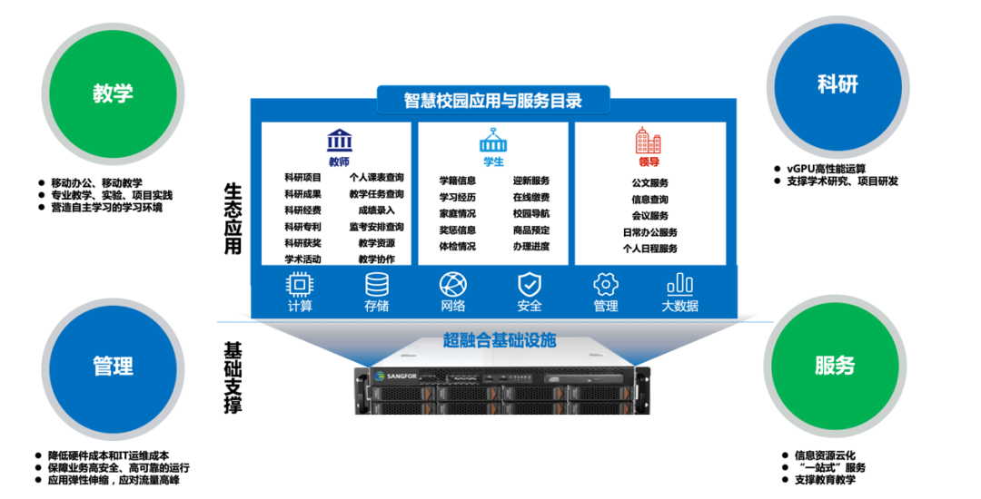 在满足这些需求的同时,如何有效地控制硬件成本、能耗成本、空间成本和管理成本,成为学校重点关注的问题。