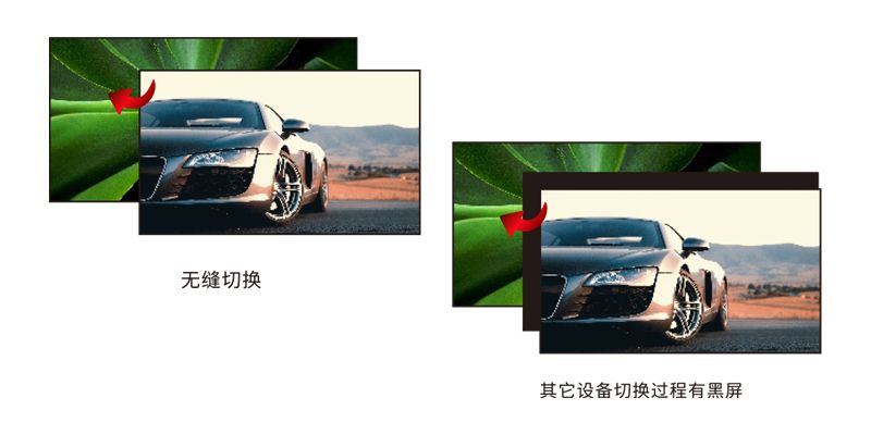 支持无缝实时切换,保证图像切换间隔无黑场,达到瞬间切换的效果。