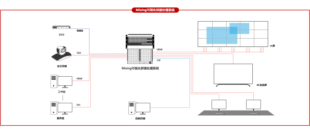 系统采用灵活、可靠的模块化设计,支持232串口、网口等多种控制方式,为需要进行高清数字音视频切换、管理、控制的专业工程提供个性化的解决方案。