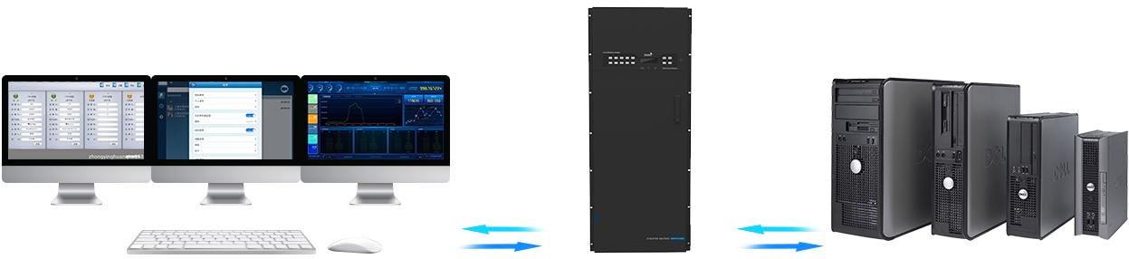 通过一套键盘鼠标显示器切换、管理多台计算机设备,为坐席人员带来实时的全方位管控体验。