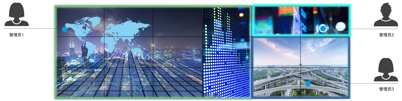 支持多人分权限管理,可指定人员管控特定信号源或大屏幕区域,多人之间操控实时同步。