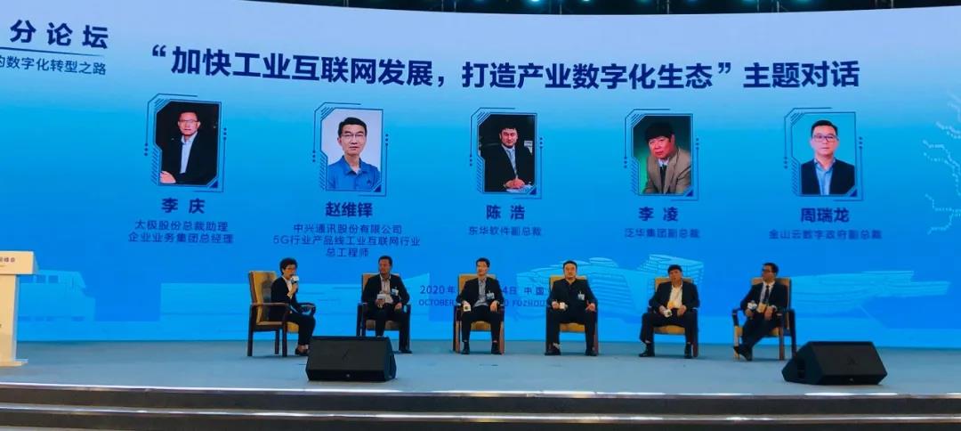 论坛以“工业互联网,全球新形势下的数字化转型之路”为主题,结合工业互联网在抗击疫情期间的实践,全面展示了工业互联网最新发展成效,共同探讨下一步推动工业互联网创新发展和应对全球不确定性挑战的策略与路径。其中,“加快工业互联网产交融协同,打造产业数字化新生态”主题对话环节,来自工业互联网产业联盟、太极股份、中兴通讯、东华软件、平安集团、金山云等专家就企业数字化转型需求、工业互联网如何助力企业数字化转型以及工业互联网产业发展等探讨交流。