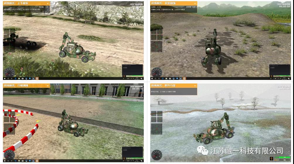 1)训练模式:空动作、90度挖土甩方、装车、平整路面、挖沟刷坡、挖日字形沟槽、行走装车、上下坡、平面找平、上下板车、翻越壕沟、挖石头装车、破碎作业等训练课题。