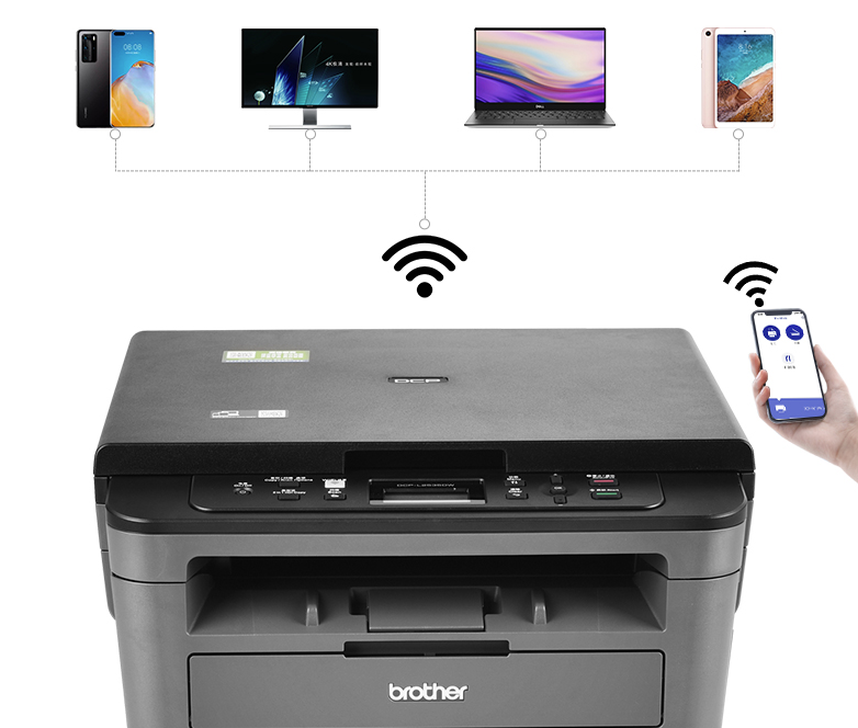 兄弟 DCP-L2550DW/L2535DW 打印机均配置无线网络连接功能,更是支持通过【兄弟畅享印】小程序实现局域网内的微信打印。