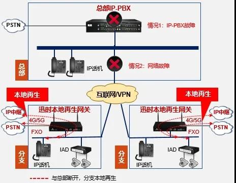 总部IP-PBX故障时,为分支机构提供本地通信再生能力