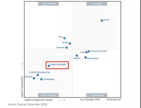 值得注意的是,这是深信服第十年入选Gartner SWG魔力象限。严格来说,2011-2020年,连续十年进入Gartner SWG魔力象限的中国厂商,只有深信服。