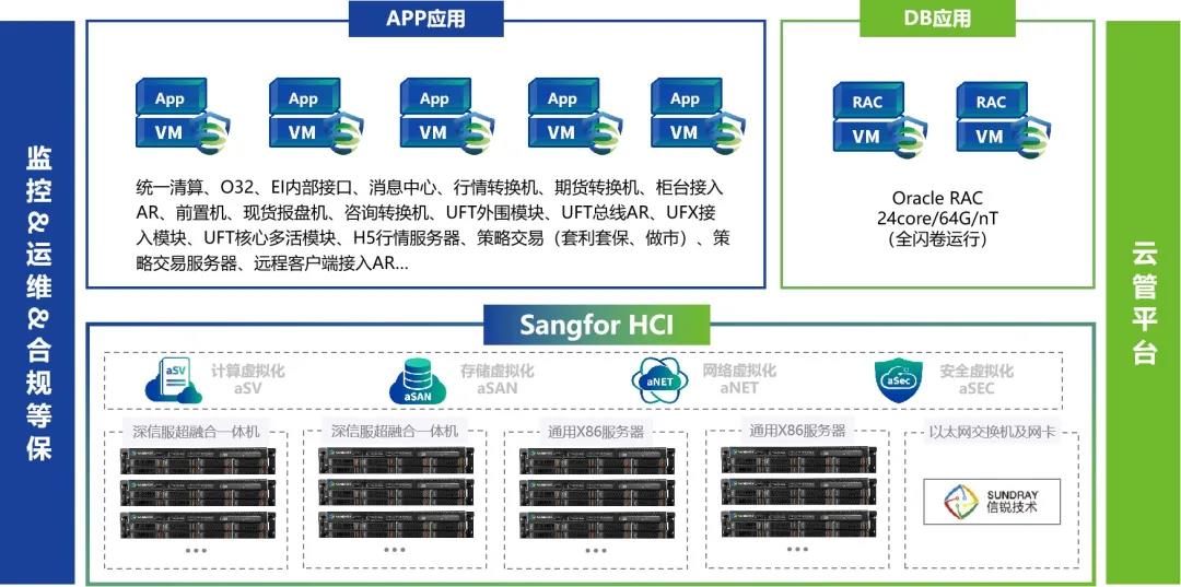 恒生O32作为大资管行业核心系统的代表,与深信服在基础架构承载方面一道探索,致力于为大资管行业提供一套更加“简单易用、高性能、灵活可靠”的底层架构。信服云以“软件定义数据中心”的理念,基于深信服超融合,为恒生O32打造了全新承载平台。