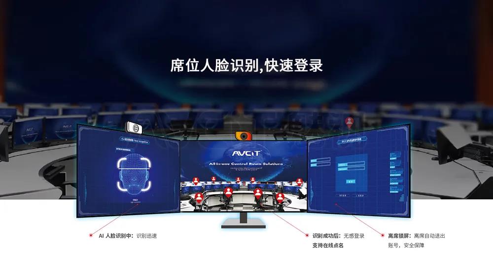 区别于耗时长、过程繁琐的账号密码登录方式,AVCiT魅视分布式系统“坐席AI人脸识别登录”功能,为用户安全、快速进行坐席登录创造了极大的便利——提供人脸识别登录、离席自动登出实用性功能。通过人脸识别即可快速完成用户身份的安全性认证,实现简化用户登录流程,提升用户坐席操作体验感;保障数据信息的安全,大大降低用户信息泄露风险。