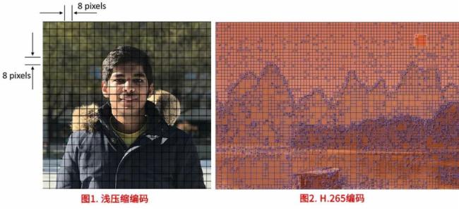 1、浅压缩”每帧无差别编码;而H.265采用帧间预测、关键帧+差异帧方式编码。