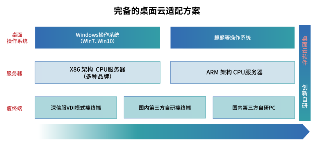 随着信息与通信技术全面快速发展,数据中心IT基础架构、办公办案终端IT基础架构正发生很大变化。合规的X86架构CPU服务器和ARM架构CPU服务器正被越来越多地使用,Windows操作系统和麒麟等操作系统也得到有机有序的结合使用,流式软件、版式软件、数据库、中间件等也有了更多品牌的选择空间。但在创新过程中也会遇到一些问题与挑战,例如众多业务应用软件与新IT基础架构的兼容适配进度不一致、效果有差别,新IT基础架构操作体验需要不断提升、安全性需要不断提高、运维管理需要不断提效。在此背景下,深信服创新的桌面云解决方案应运而生,支持自研的桌面云软件部署在X86架构或ARM架构 CPU服务器上;支持在安全合规的X86架构CPU服务器上同时运行Windows和麒麟等操作系统的虚拟桌面;支持用户侧单独使用深信服VDI模式瘦终端或“VDI软件+多种类型PC”,供法院用户在技术创新过程中按需选用;支持后续将Windows桌面操作系统里的应用和数据一定程度地平滑切换到其他操作系统里运行。