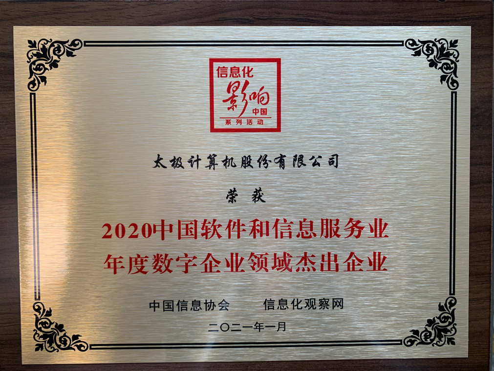 纵观2020年,太极数字企业秉持使命感、服务精神与创造力,备受用户、伙伴等各界的信赖。公司荣获“2020数字赋能先锋企业30强”、“2020能源互联网解决方案提供商”、 “2020年工业互联网优秀应用案例”等荣誉;慧点科技获评“2020北京市软件企业核心竞争力评价(规模型)”奖,WE.Office荣获“2020中国协同办公年度创新产品奖”;法智易合同管理荣获“2020年度优秀软件产品”等众多荣誉。