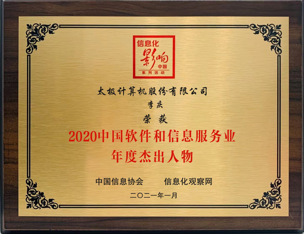作为中国电科旗下软件与信息服务业龙头企业,太极股份荣获“2020中国软件和信息服务业年度数字企业领域杰出企业”奖。同时,太极股份总裁助理李庆荣获“2020中国软件和信息服务业年度杰出人物”奖。