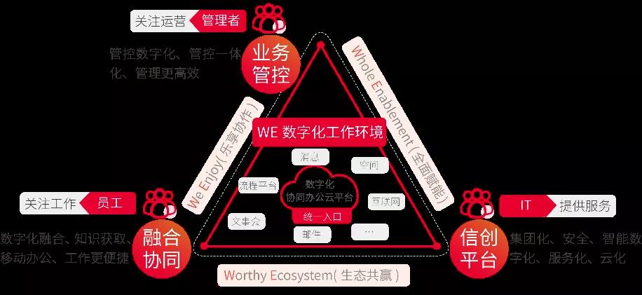 新一代智能OA产品——WE.office协同办公平台8.0,既秉承了慧点协同管控的业务经验,又融入了全新的设计理念和技术能力,并且针对细分领域进一步提供了专业的家族产品,包括集团企业版、军队版和党政版,对行业用户的特点进行了场景化的设计和优化,同时也发布了新版面向大型组织的专属智能移动平台产品—慧家园,聚焦文事会核心管理业务,基于WE数字化工作环境,实现企事业单位“纵向贯通、横向互通”的目标,立足突破空间限制,全面实现“一站到底”的办公环境。