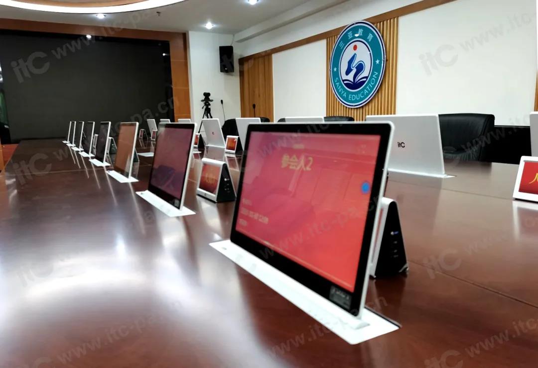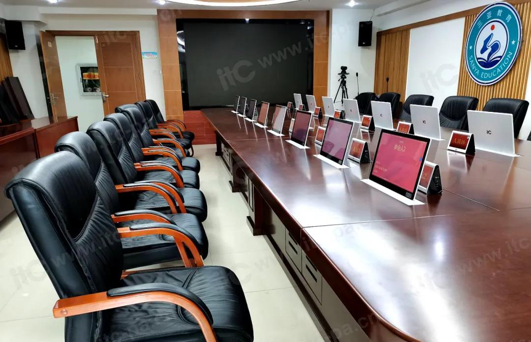为贯彻低碳环保理念、落实无纸化办公、提高会议效率以及节约会议支出等,三亚市教育局进行会议室智慧升级建设。itc特此设计了集无纸化会议系统、专业扩声系统、电子桌牌等一体化解决方案,主要用于各种教育会议,为参会人员以及从事教育活动人员使用,提高会议效率。