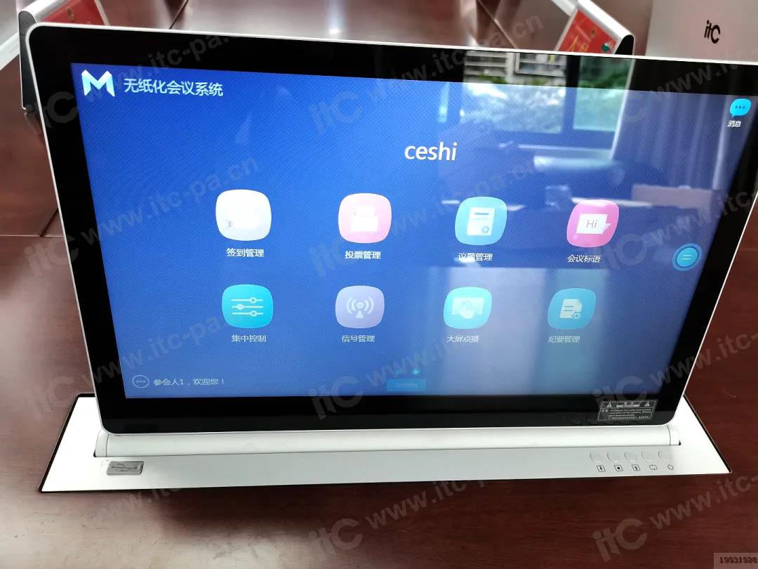 综合教育局的实际情况,itc根据用户需求及室内布局,在会议室每个座位设计一台触控无纸化智能桌面与终端主机相结合的无纸化会议系统,把会前、会中、会后的全部会议功能融入到系统当中,增加会议签到、投票、信息交流、会议服务、人员管理、会议管理等应用功能,实现了整个会议的智能管控。