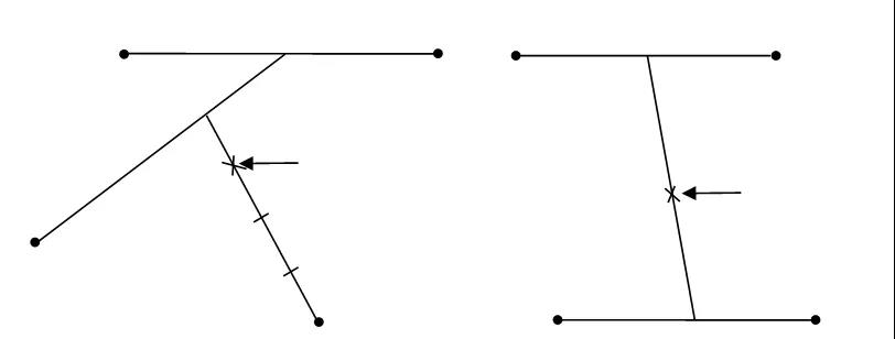 平均弹着:先以直线连接任何两个弹着点,取中点与第三个弹着点相连;将连线分成三等分,取靠近前两发的等分点与第四个弹着点相连:将连线分成四等分,靠近前三发的等分点,就是平均弹着点(下图左)。也可将靠近的弹着点两个一组地用直线连接起来,再将两条直线的中点连接,此连线的中点就是平均弹着点(下图右) 。四个弹着点中如有三个弹着点靠得近,而另一个弹着点离得较远,则只按三个较密集的弹着点求平均弹着点。